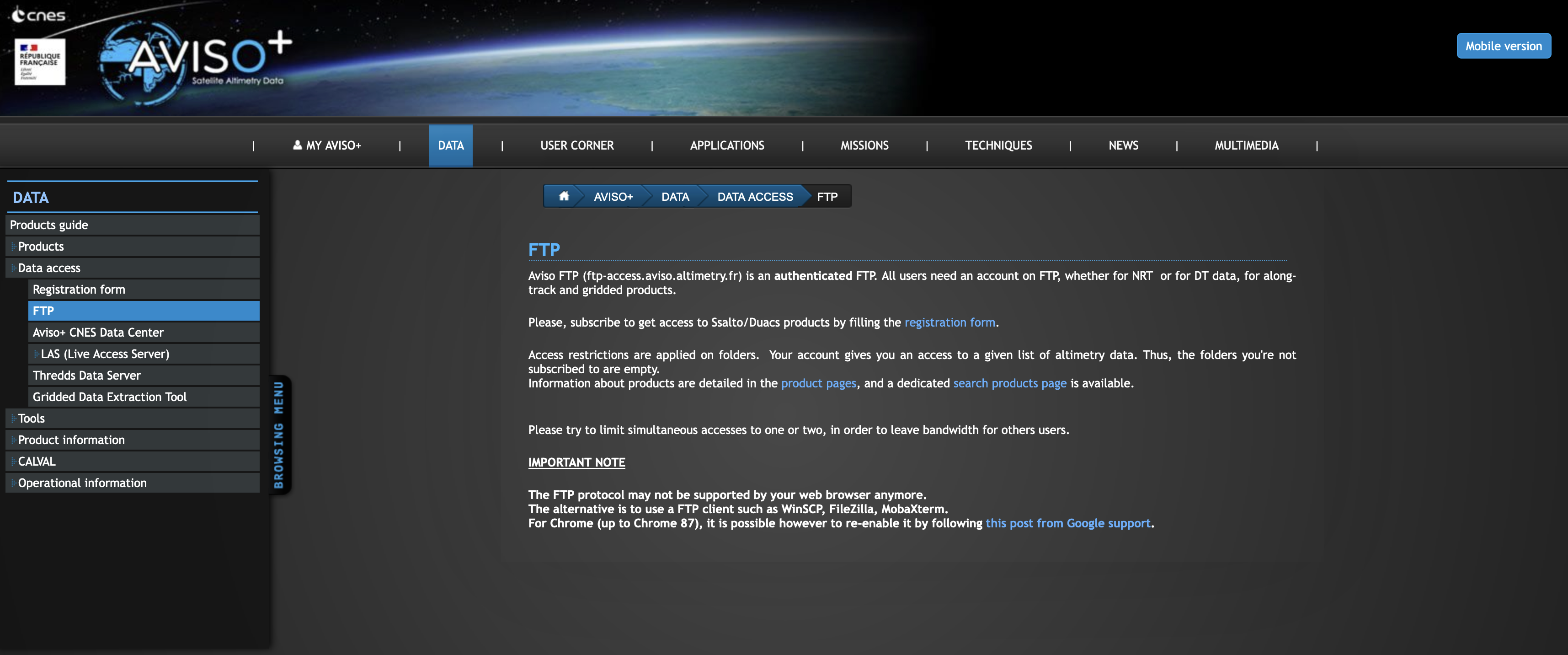 You do not actually have to download the front dataset from AVISO at this point. We will use the dataset located in the workshop repository that you have previously cloned.