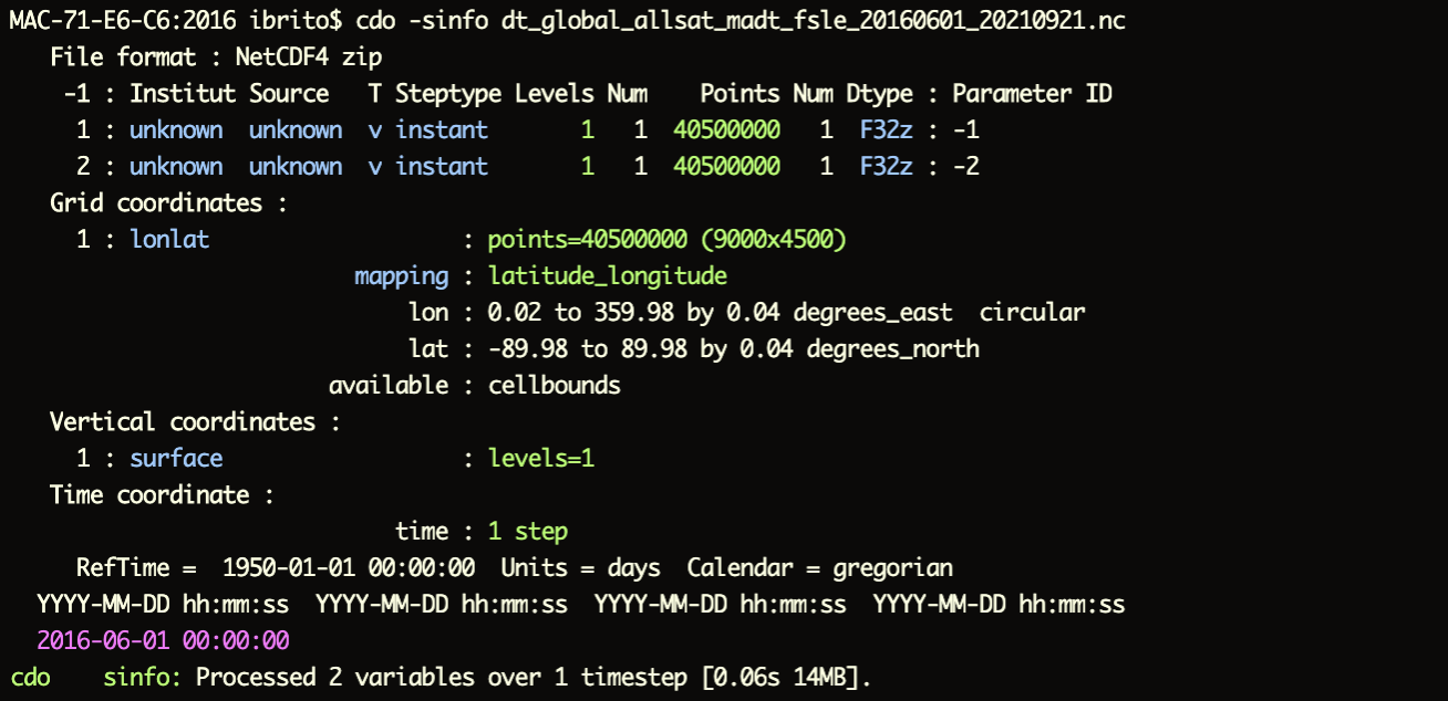 export DISPLAY=$(grep nameserver /etc/resolv.conf | awk '{print $2}'):0.0ncview dt_global_allsat_madt_fsle_20160601_20210921.nc3. File Details with CDO