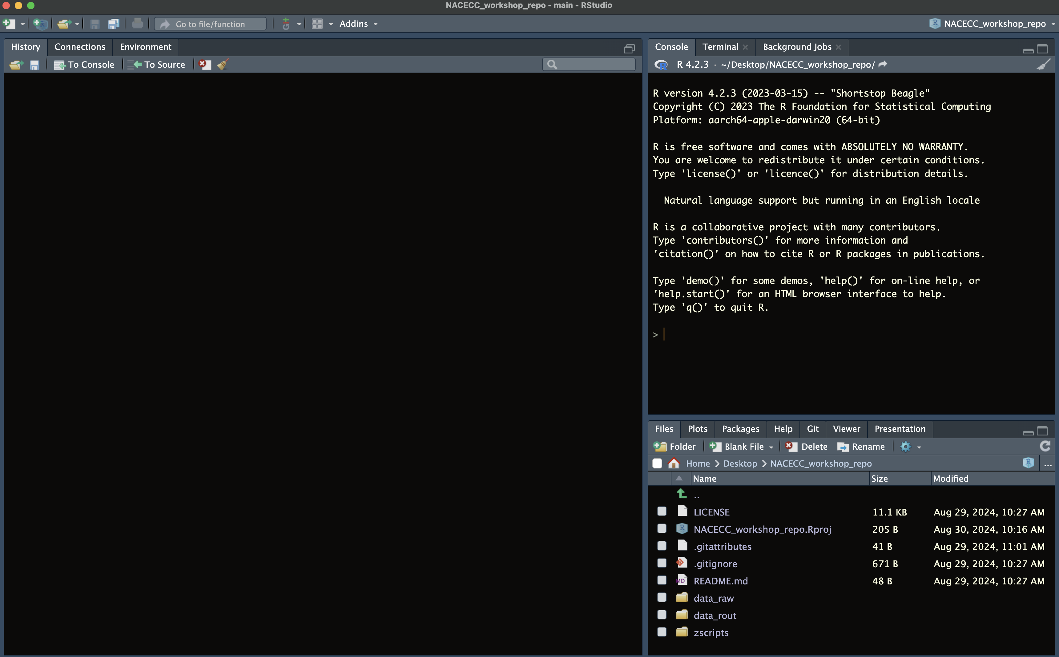 R sessioninRStudioand, by default, set theNACECC_workshop_repoas the working directory, with relative paths
